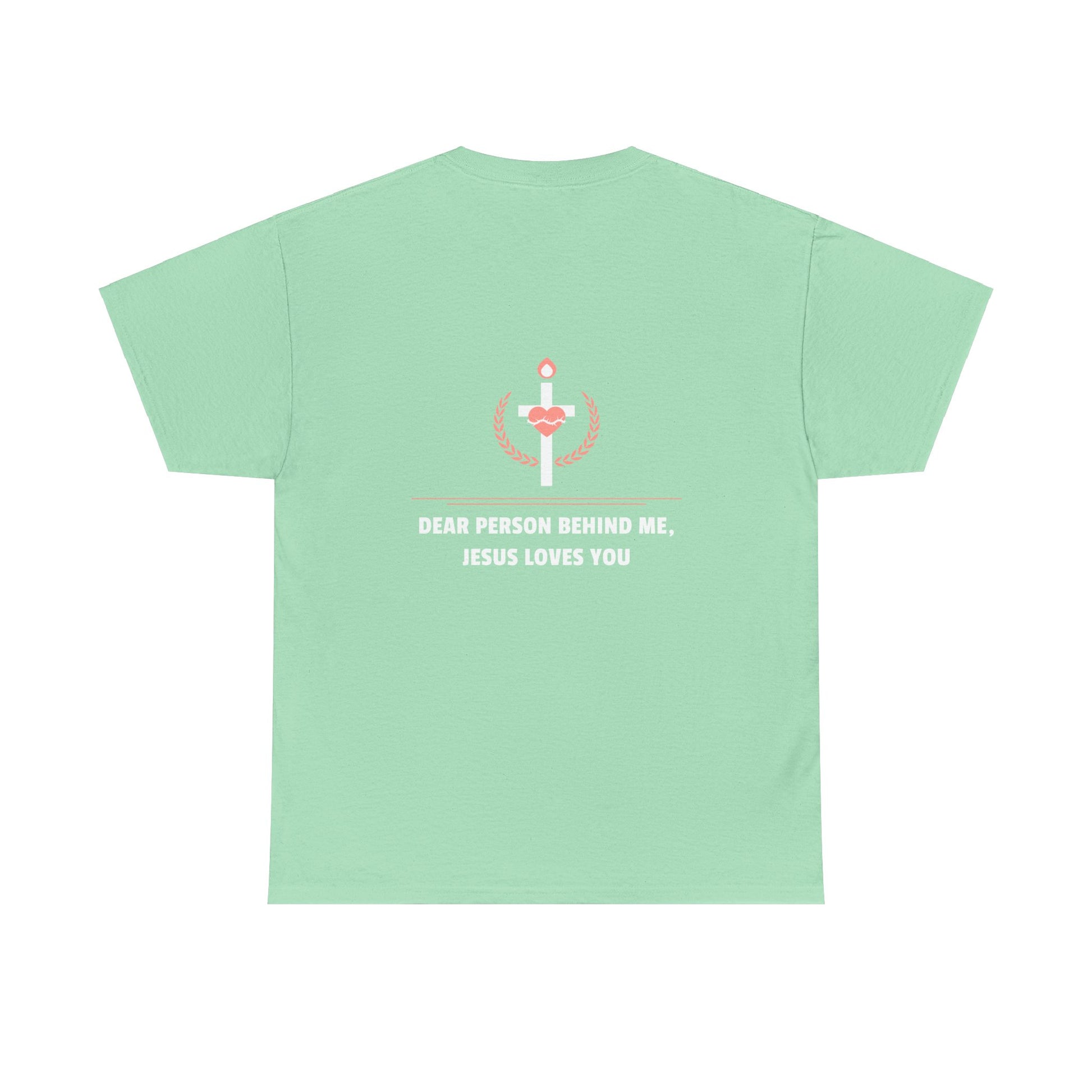 Help show Jesus's love for others with this shirt, letting everyone around you know that no matter what Jesus loves them.